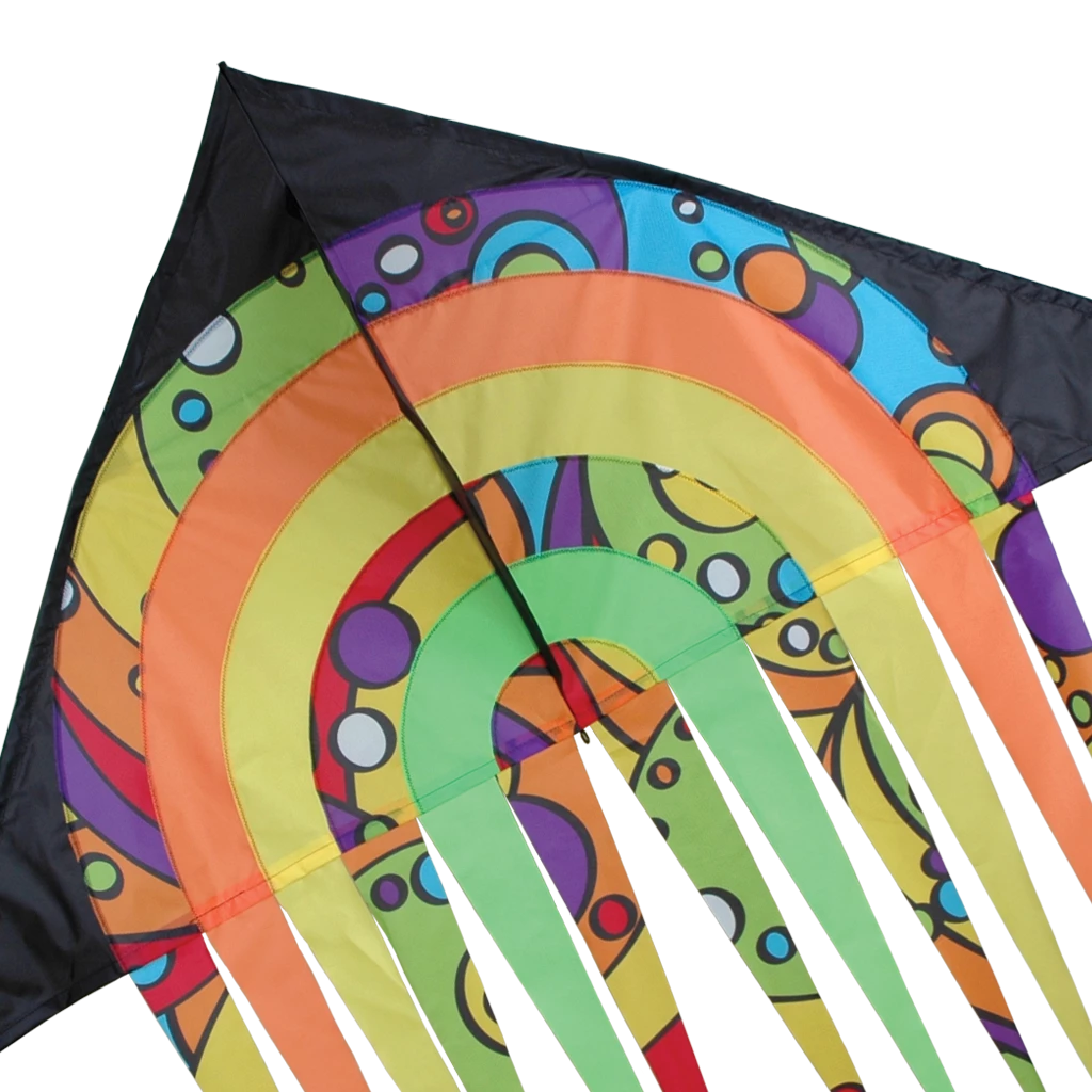 Expert kite builders know that adding fringes or tails to the trailing edge of a delta kites improve the stability of this very popular platform. The Premier 56 in. Streamer Delta has an impressive wind range, making it an excellent choice for either inland or beach flying. The classic retro graphics look great in the sky with the beautiful streams dancing in the wind. Put your rainbow to the sky!